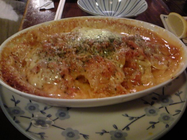 ラザニアの具食べている感じ?