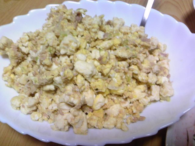 パン粉とマヨネーズのかわりに卵を入れて、いためて見た。