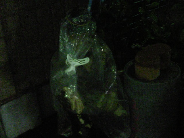 駄菓子屋の前に置いてあるおじさんで、握手すると夢が叶うらしいですが、雨の日の夜はこうなっていますw