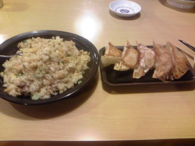 ラーメン一口食べて、大盛チャーハンとジャンボ餃子を食べてからのファミレスへw