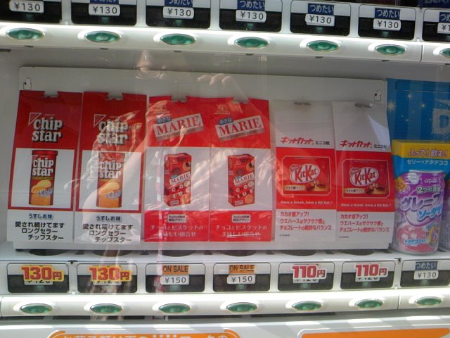 実家の近くのダイエーのそばにある自販機にお菓子売ってます。
